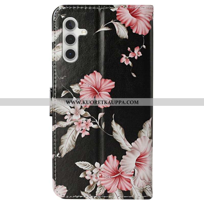 Nahkakotelo Samsung Galaxy S24 Fe Auringonkukkakuvio Hihnalla