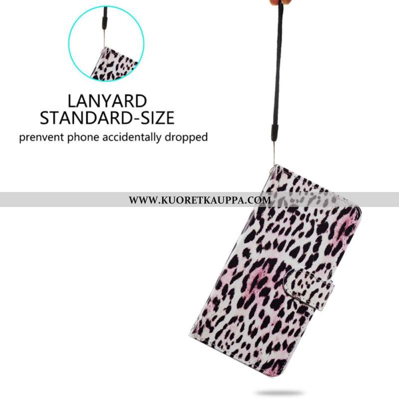 Kotelot Samsung Galaxy S24 Plus 5g Vaaleanpunainen Leopardikuvio Hihnalla