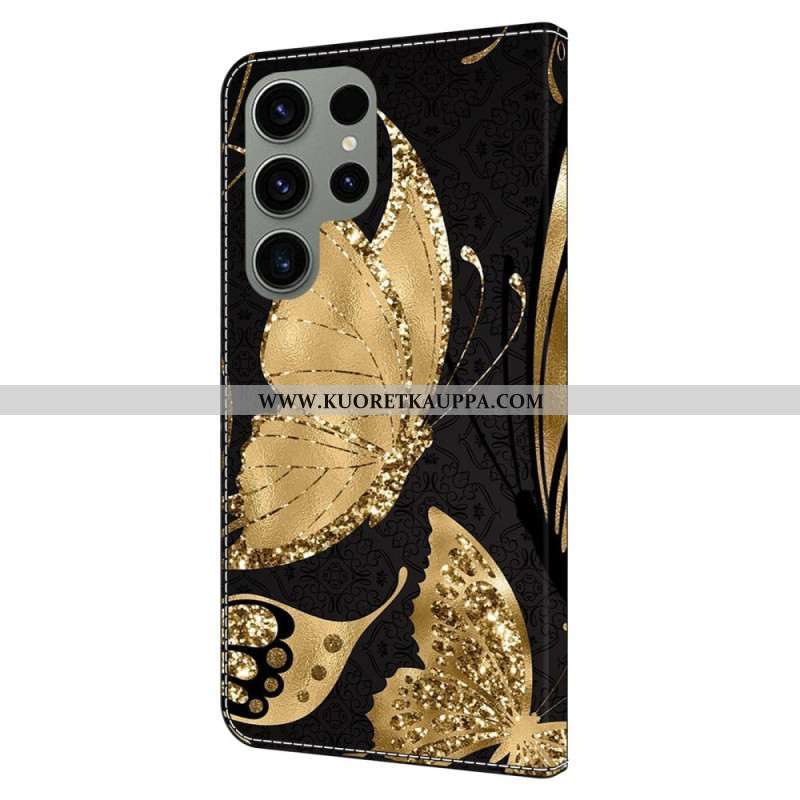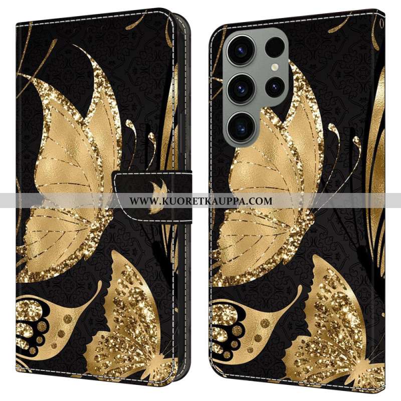 Kotelot Samsung Galaxy S24 Ultra 5g Kultainen Perhonen Mustalla Taustalla
