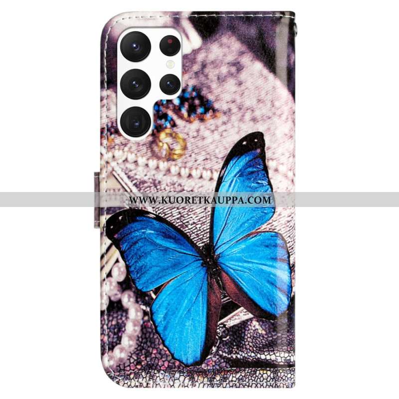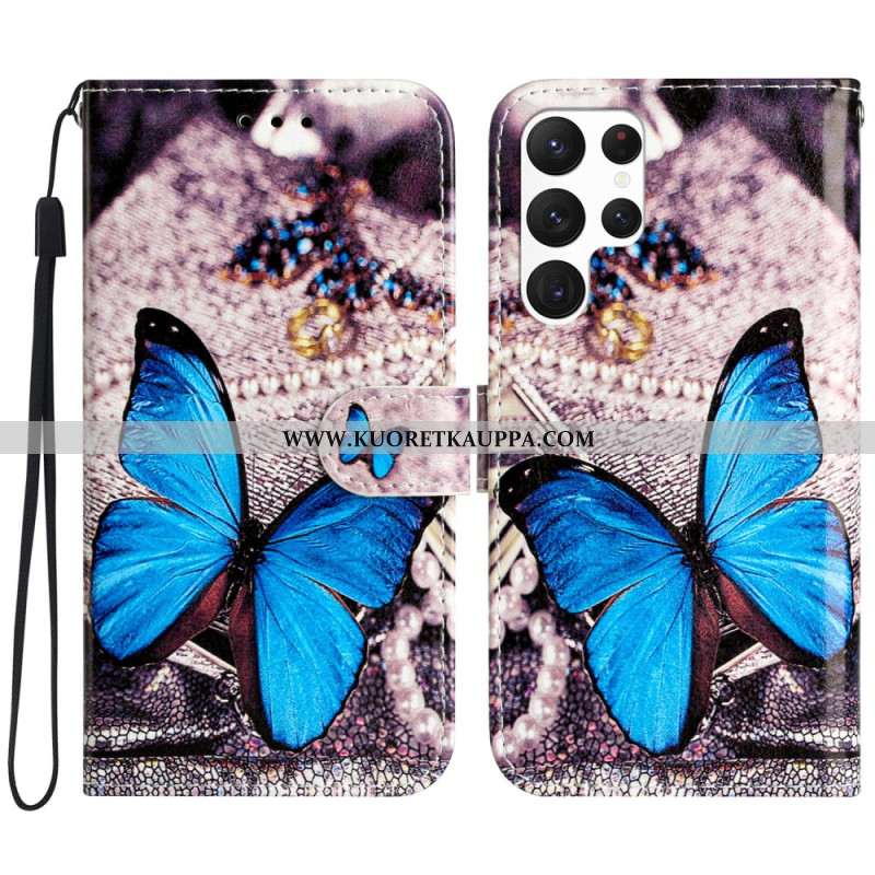 Kotelot Samsung Galaxy S24 Ultra 5g Sininen Perhonen Hihnalla