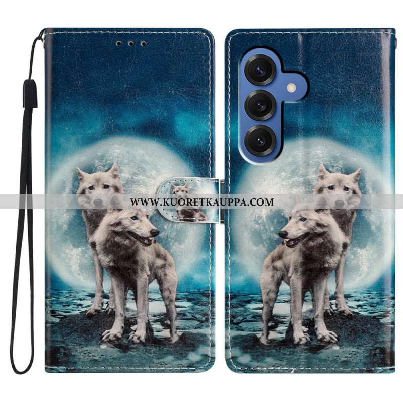 Nahkakotelo Samsung Galaxy S26 Plus Lootuskuvio Hihnalla