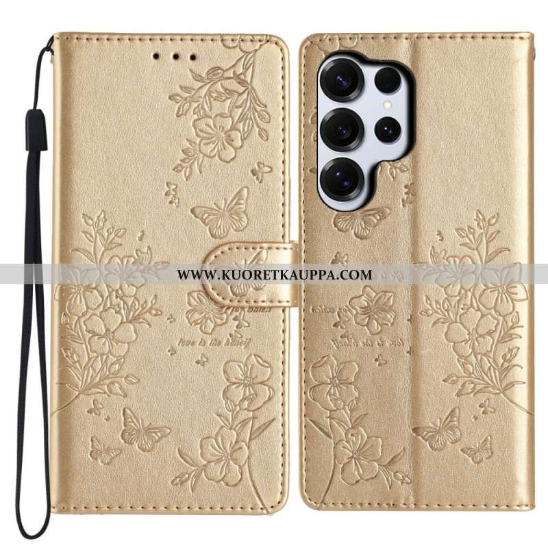 Nahkakotelo Samsung Galaxy S26 Ultra Perhoskuvioinen Ranneke