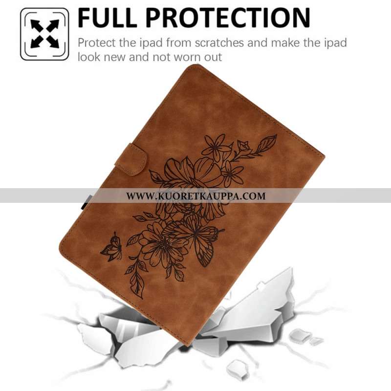 Kotelot Samsung Galaxy Tab S11 Mokkanahkainen Kukka- Ja Perhoskuvio