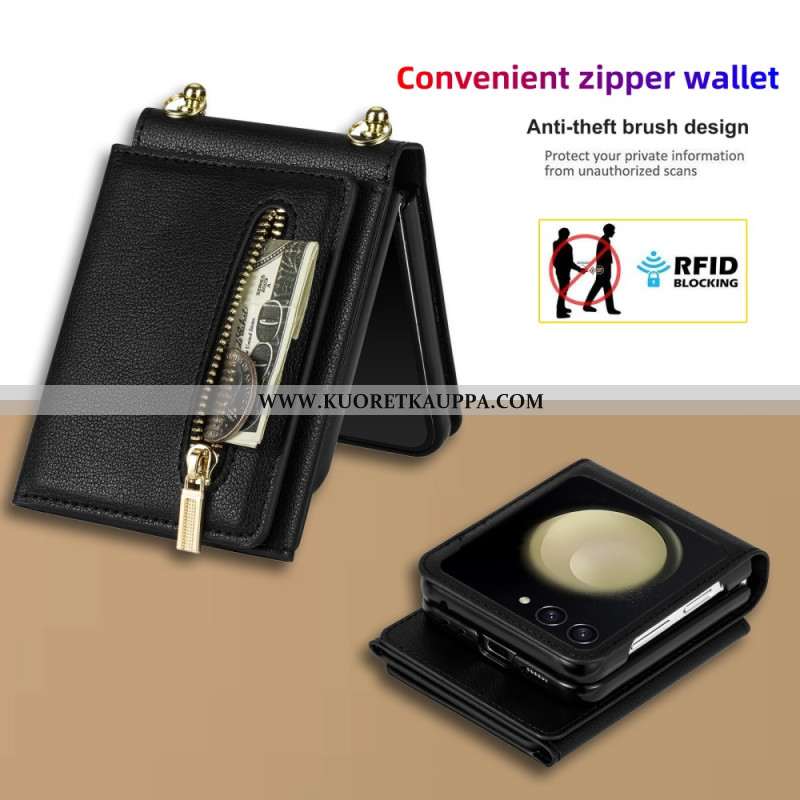 Kotelot Samsung Galaxy Z Flip 7 Rfid-lompakko Ja Olkahihna Suojakuori