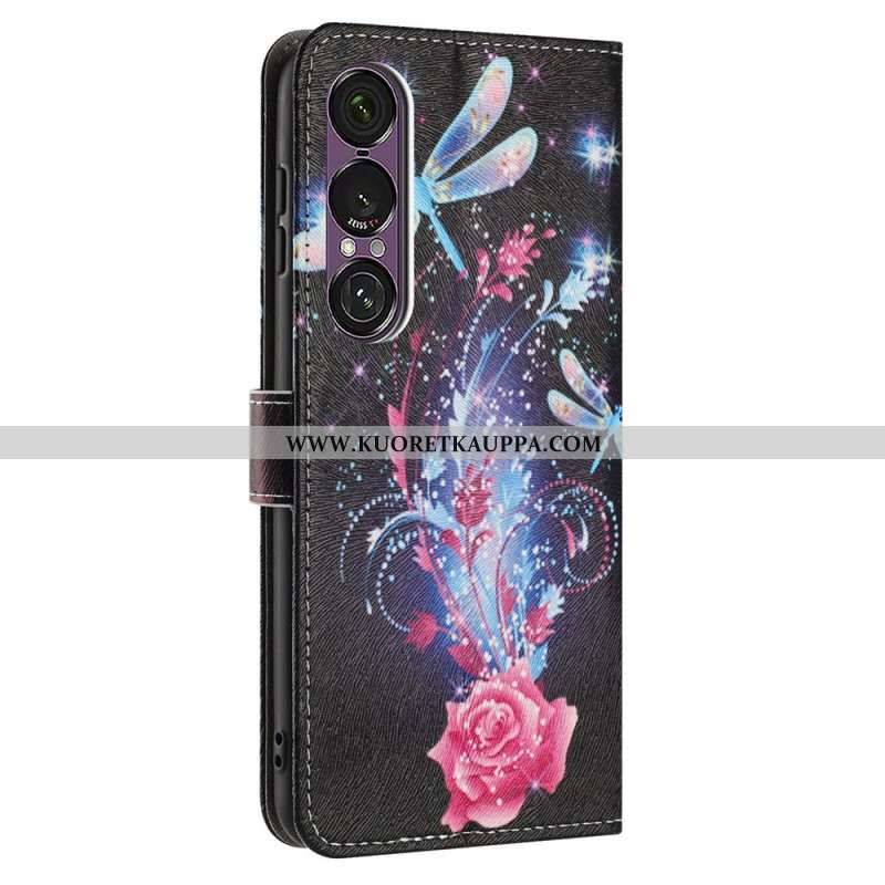 Nahkakotelo Sony Xperia 1 Vii Violetit Ruusut