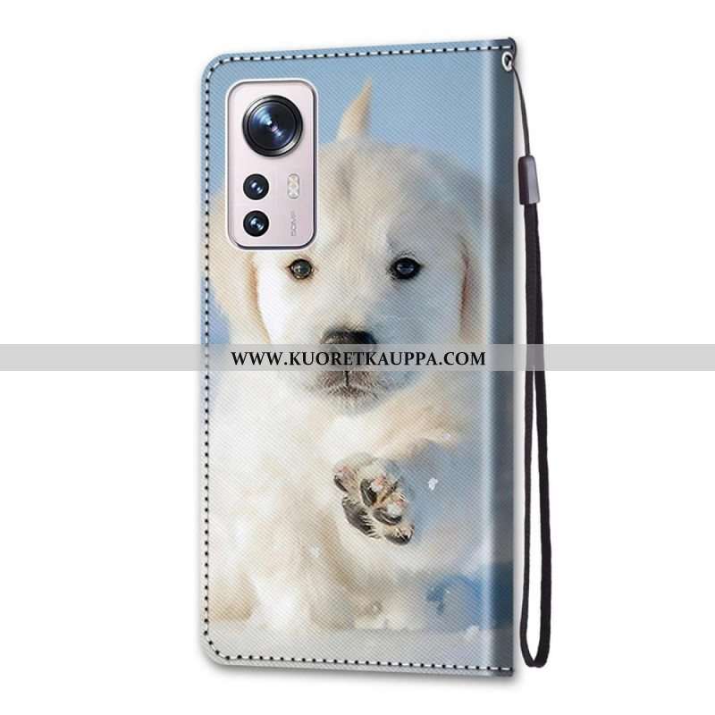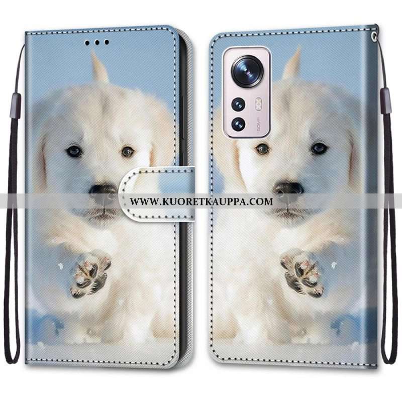 Nahkakotelo Xiaomi 12 / 12X Suojaketju Kuori Pikku Panda Hihnalla