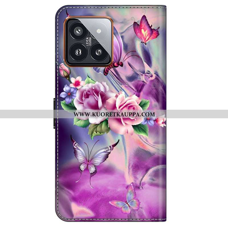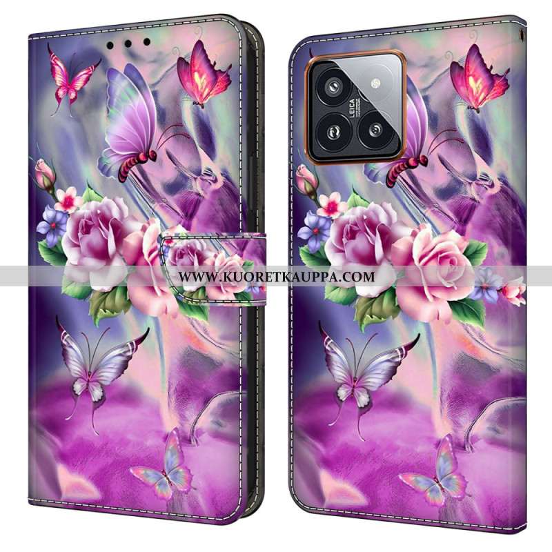 Kotelot Xiaomi 14 Pro Purppuraisia Perhosia Ja Kukkia
