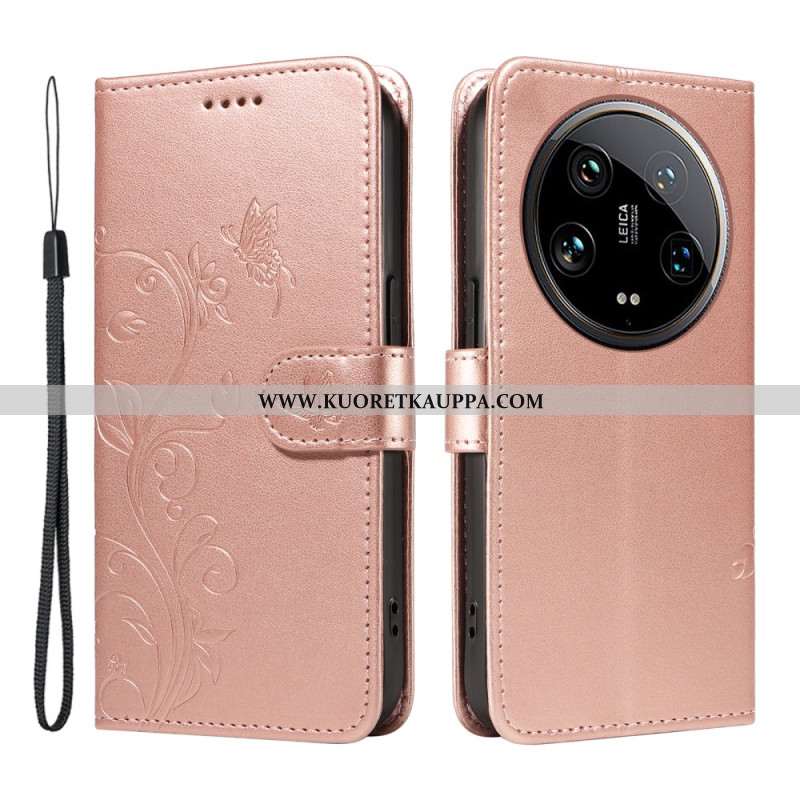 Kotelot Xiaomi 14 Ultra Kukkia Ja Perhosia Hihnalla