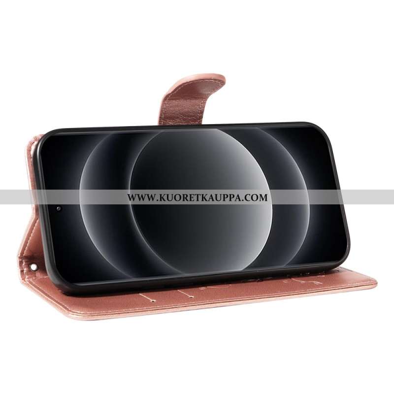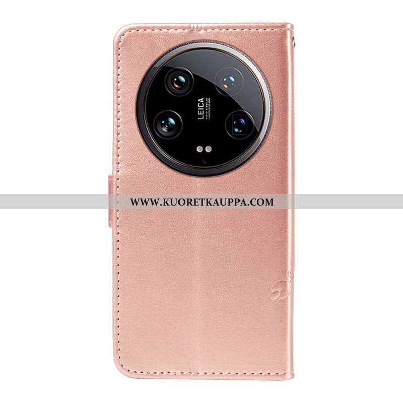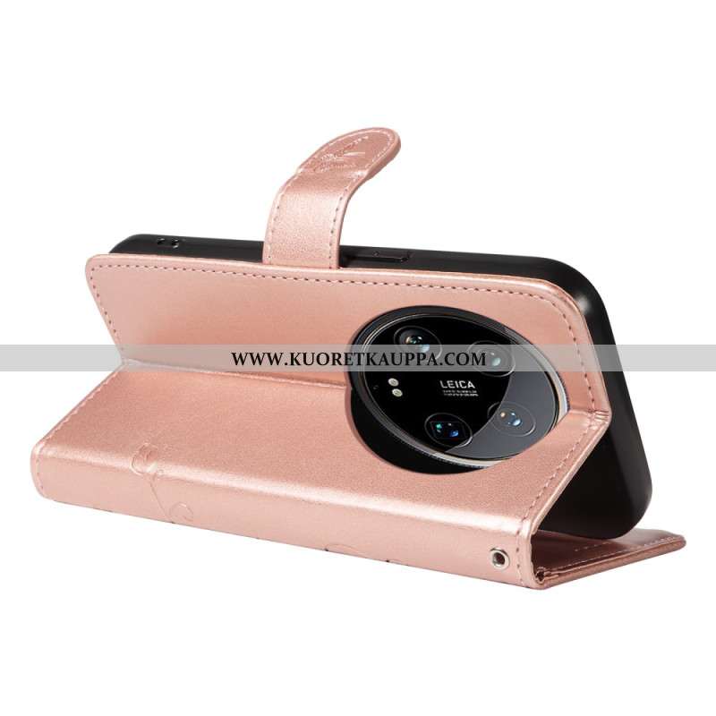 Nahkakotelo Xiaomi 14 Ultra Perhosprintti Hihnalla