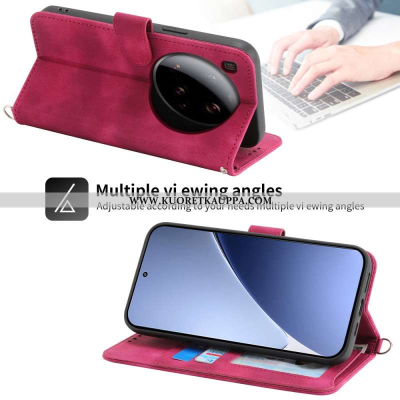 Nahkakotelo Xiaomi 15 Ultra Tikattu Hihna Ja Olkahihna