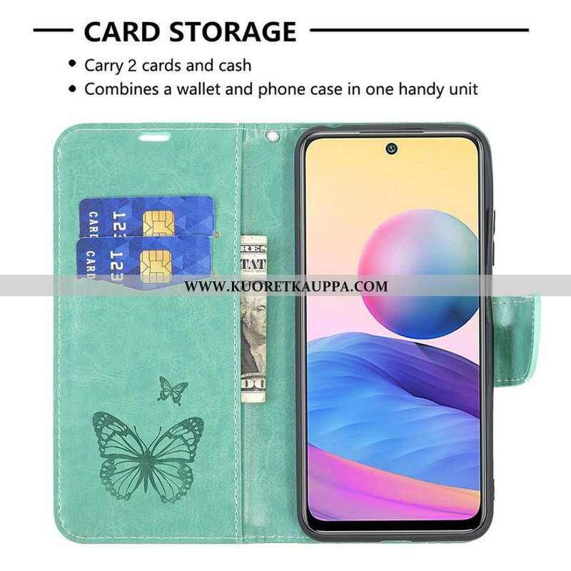 Kotelot Xiaomi Redmi Note 10 5G Suojaketju Kuori Perhosille Painettu Olkahihna