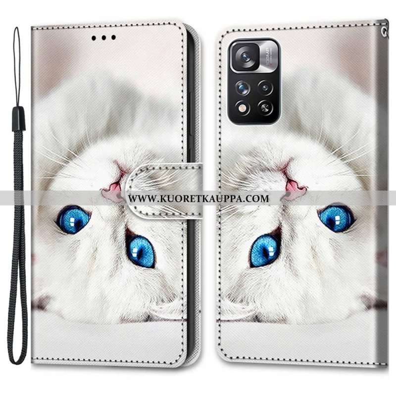 Kotelot Xiaomi Redmi Note 11 Pro Plus 5G Suojaketju Kuori Valkoinen Kissa Hihnalla