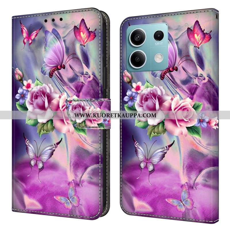 Nahkakotelo Xiaomi Redmi Note 13 5g Violetit Kukat Ja Perhoset