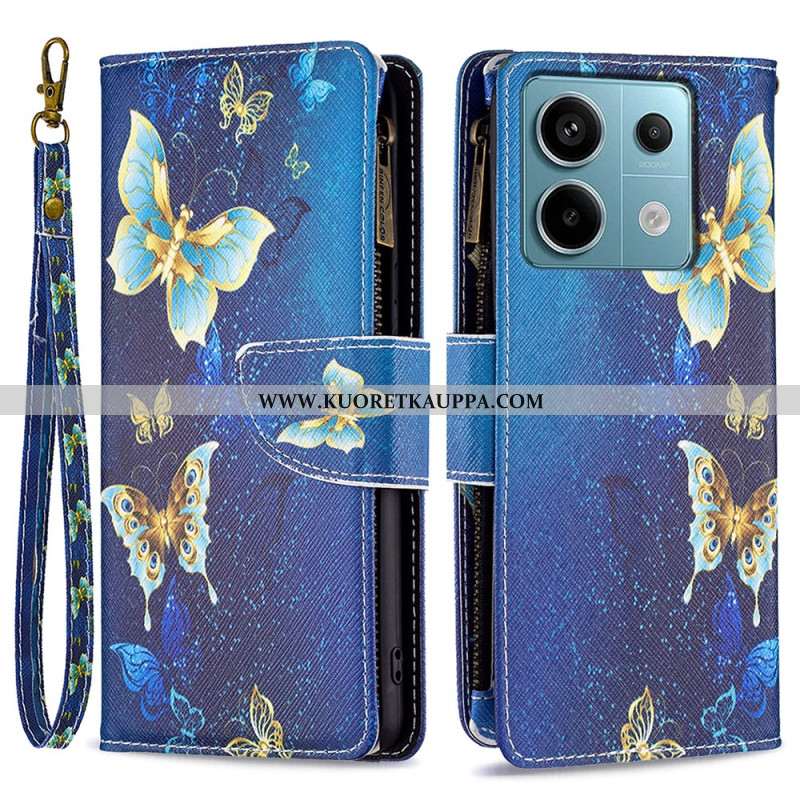 Kotelot Xiaomi Redmi Note 13 Pro 4g Golden Butterflies -lompakko Hihnalla Suojakuori