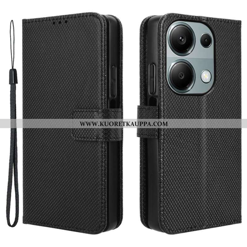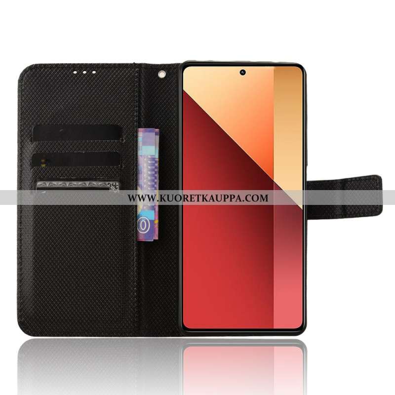 Nahkakotelo Xiaomi Redmi Note 14s Ruutukuvio Ja Hihna Suojakuori