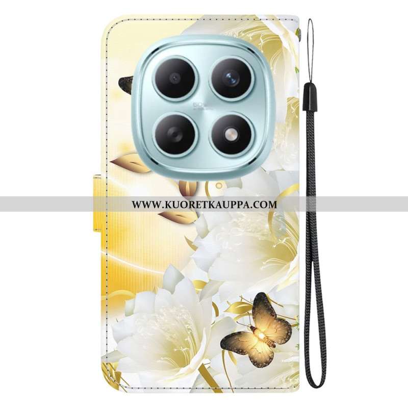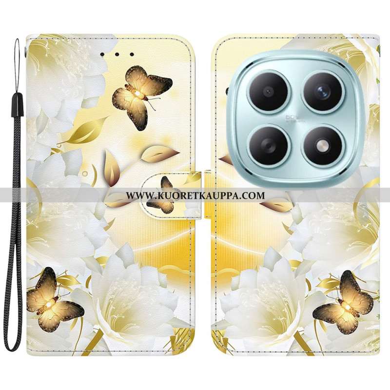 Kotelot Xiaomi Redmi Note 15 5g Puhelinkuoret Kultaisia Perhosia Ja Valkoisia Kukkia