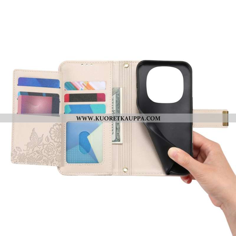 Kotelot Xiaomi Redmi Note 15 Pro Plus 5g Puhelinkuoret Kukkakuvio Ja Vetoketjullinen Tasku