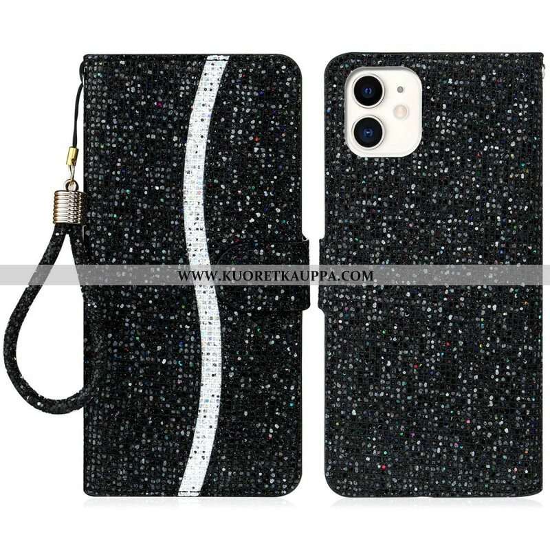 Kuori iPhone 13 Mini Kiristysnyörillä Kiristysnyöri Paljettiperhosia