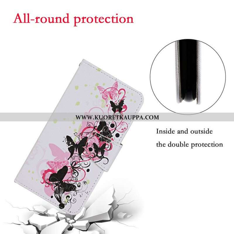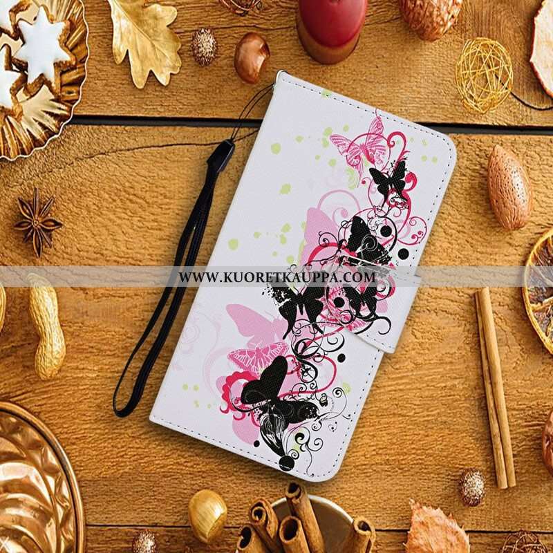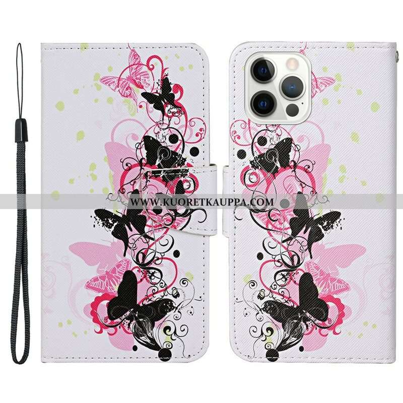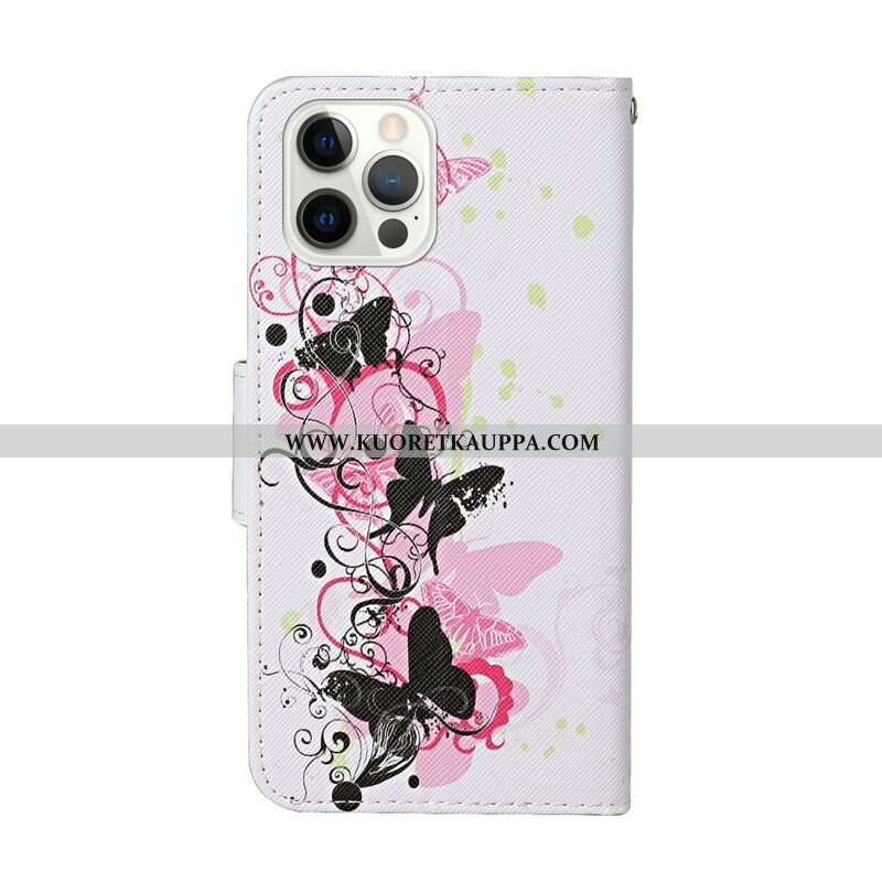 Kotelot iPhone 13 Pro Mestarilliset Perhoset Kaulanauhalla