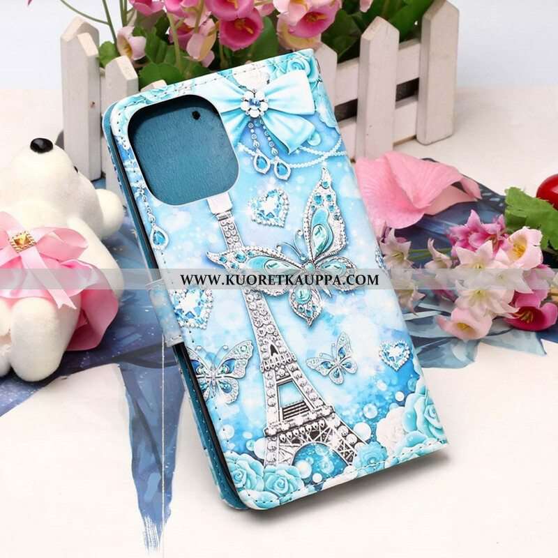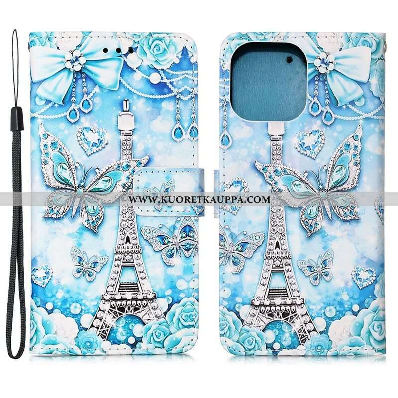 Kotelot iPhone 13 Pro Suojaketju Kuori Eiffel-tornin Perhoshihna