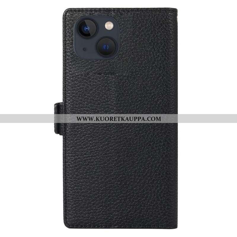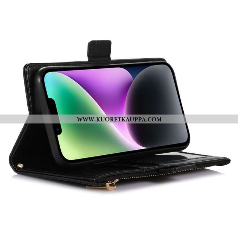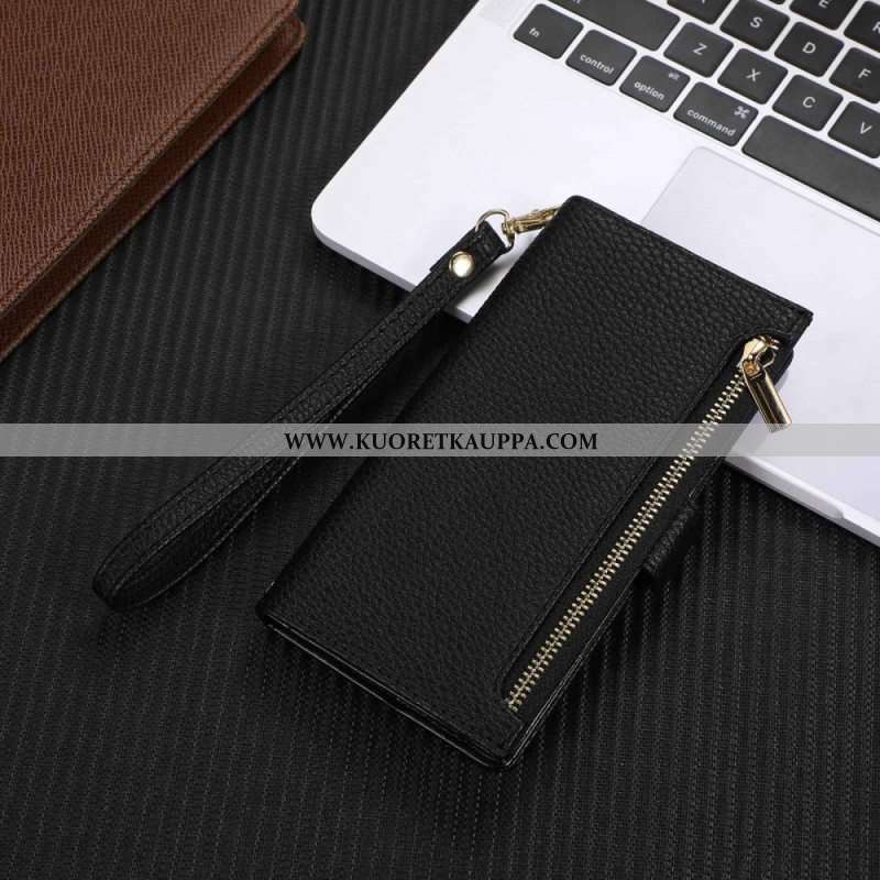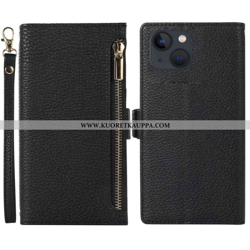 Kotelot iPhone 14 Plus Suojaketju Kuori Litchi Nahka Hihnalla Ja Vetoketjulla