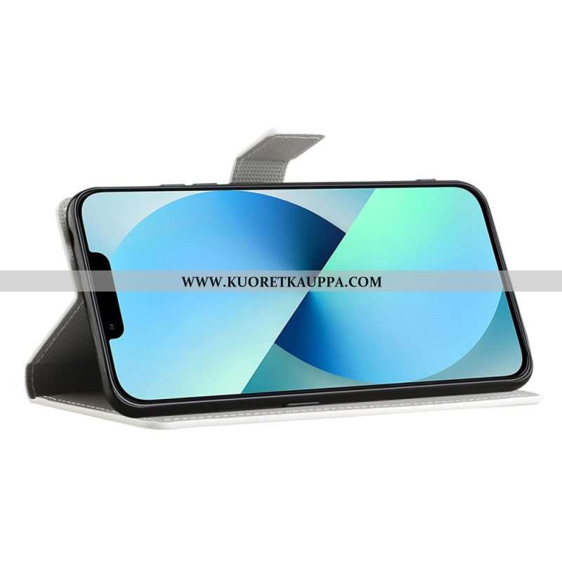 Nahkakotelo iPhone 15 Suojaketju Kuori Kukkamuunnelma Hihnalla