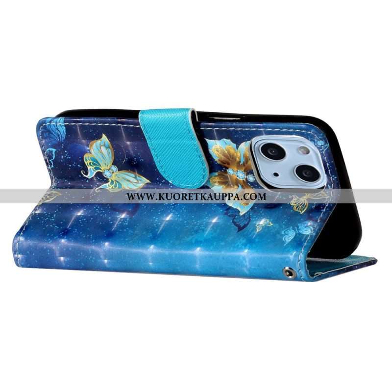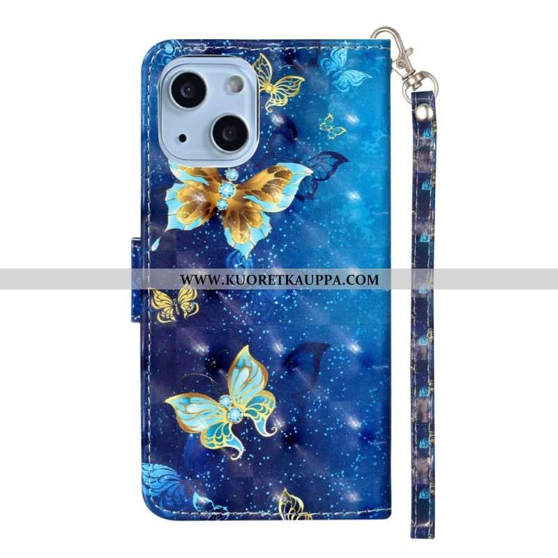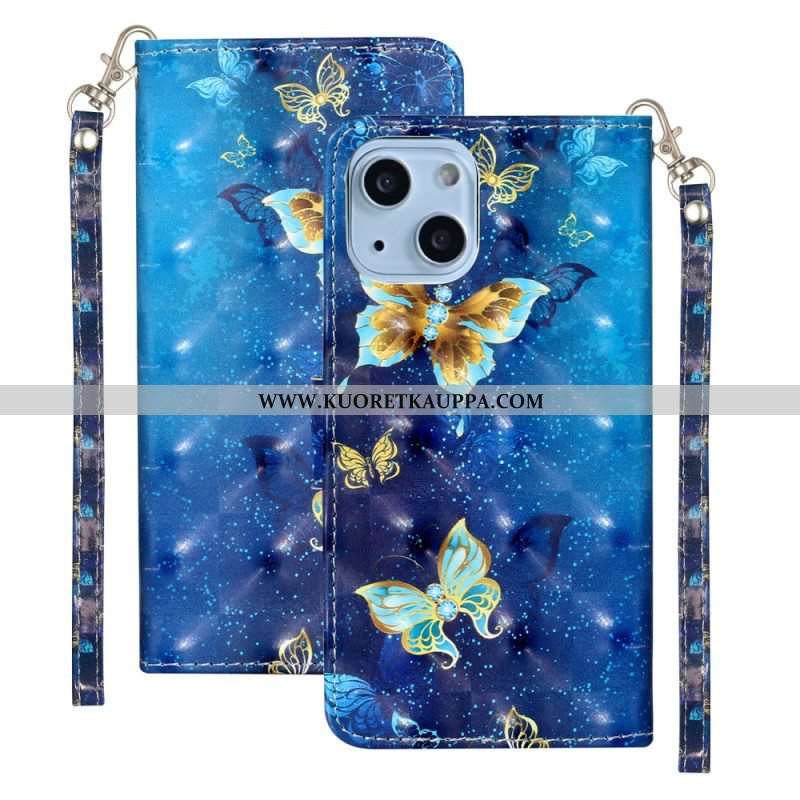 Kotelot iPhone 15 Plus Suojaketju Kuori 3d-perhoset Kaulanauhalla