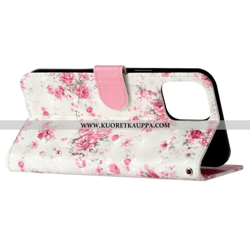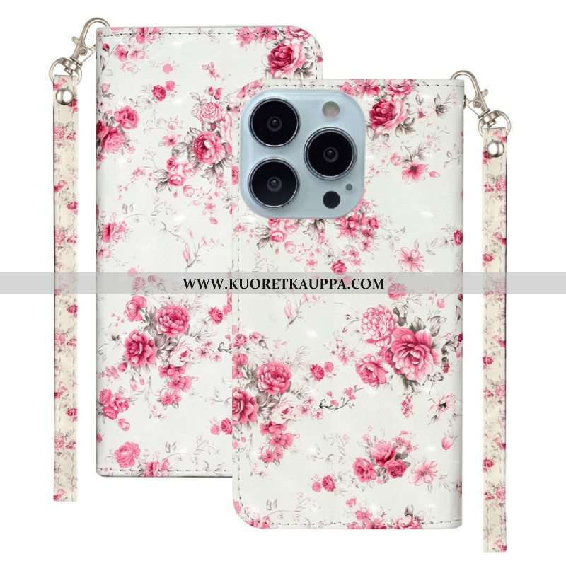 Kotelot iPhone 15 Pro Max Suojaketju Kuori 3d-kukat Hihnalla