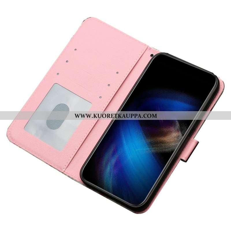 Flip Case iPhone 15 Pro Max Suojaketju Kuori 3d-perhoset Kaulanauhalla