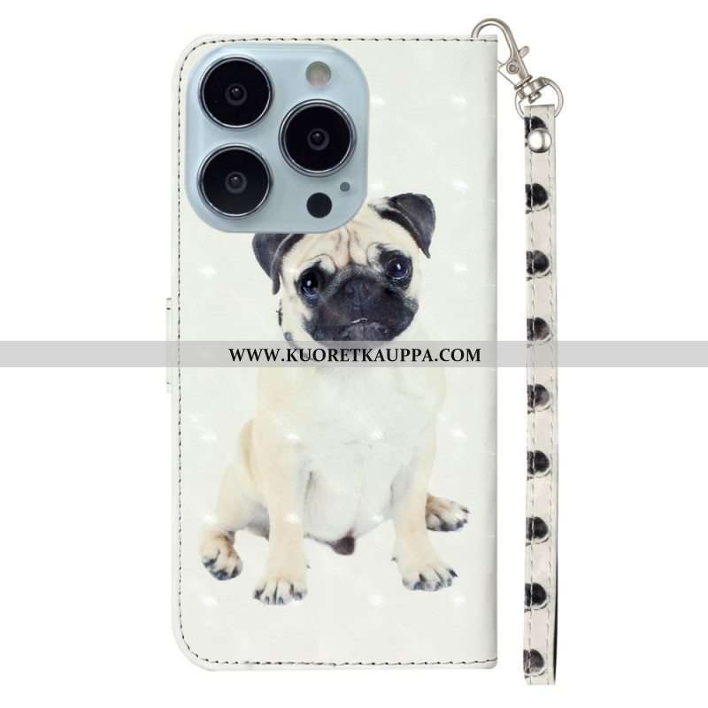 Kotelot iPhone 15 Pro Suojaketju Kuori 3d-mopsi Hihnalla