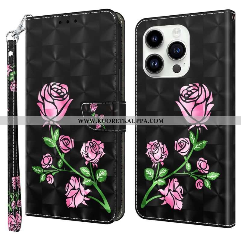 Kotelot iPhone 15 Pro Suojaketju Kuori 3d-kukat Hihnalla