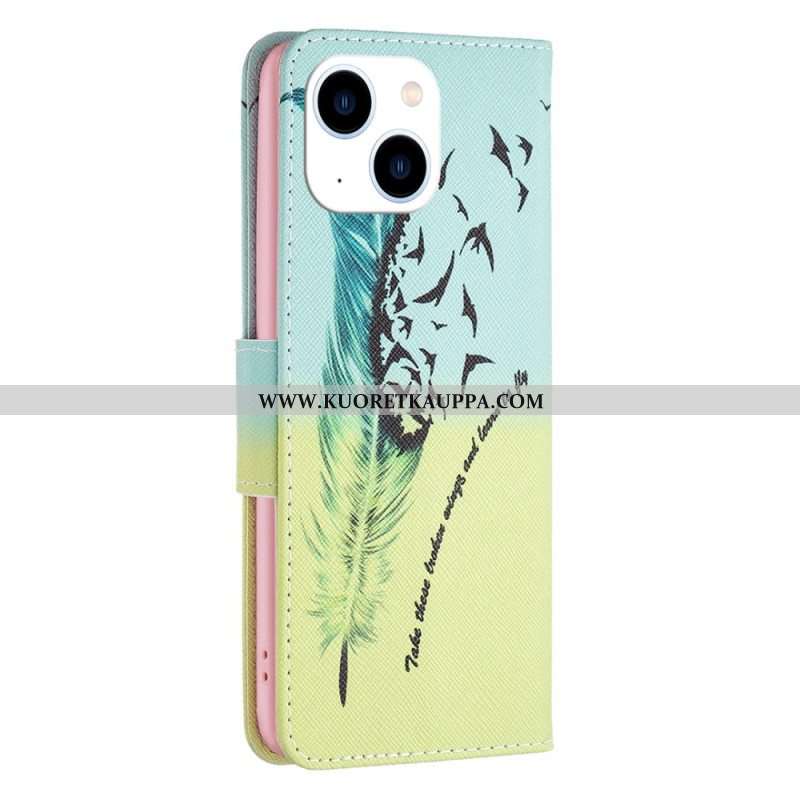 Flip Case iPhone 15 Suojaketju Kuori Sininen Perhonen Lennossa Hihnalla
