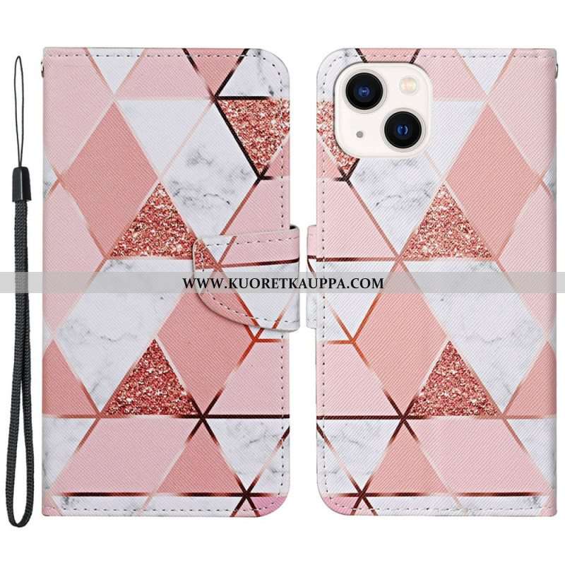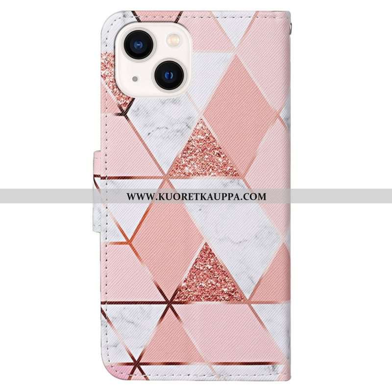 Kotelot iPhone 15 Suojaketju Kuori Marmori- Ja Glitterhihna