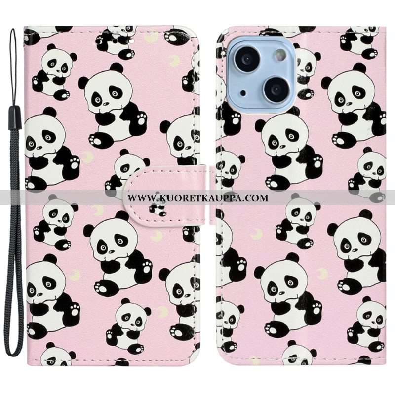 Kotelot iPhone 15 Suojaketju Kuori Pienet Pandat Hihnalla