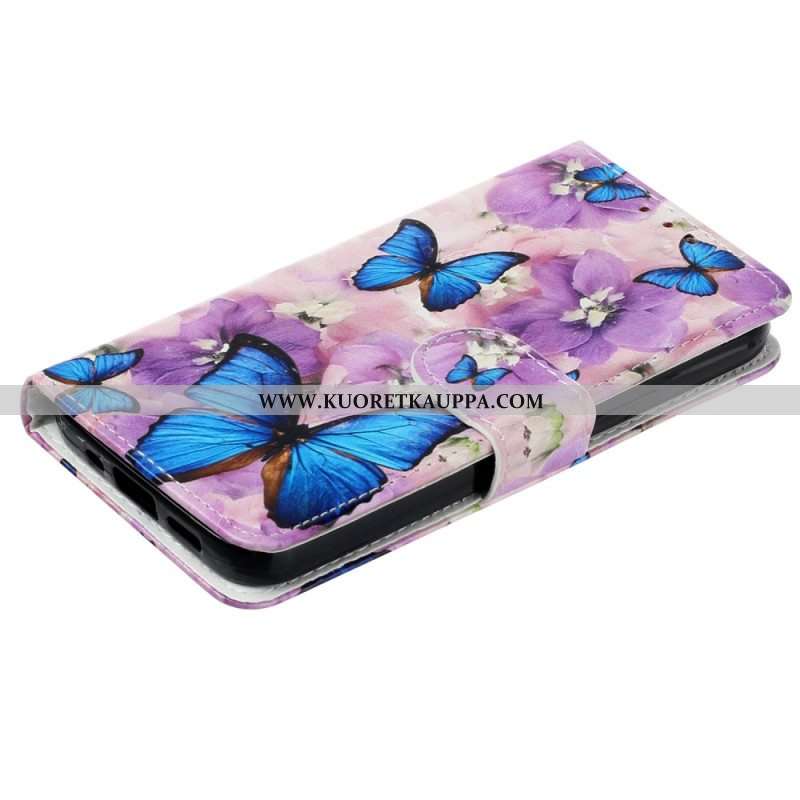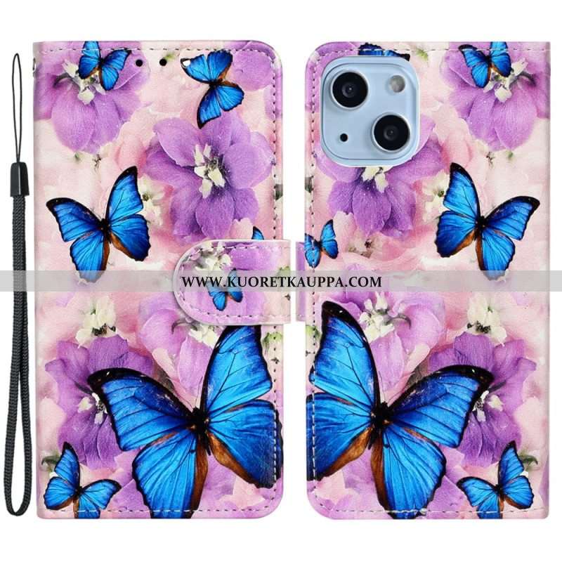 Kotelot iPhone 15 Suojaketju Kuori Perhosia Ja Kukkia Hihnalla