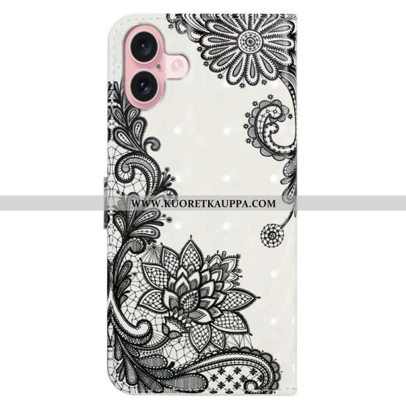 Kotelot iPhone 16 Kukkakuvio Hihnalla Suojakuori