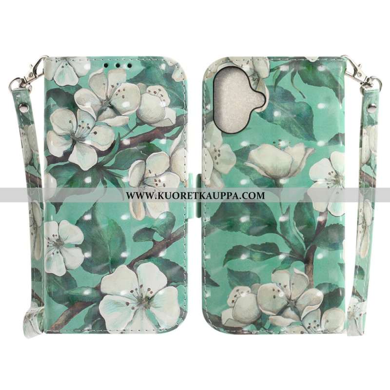 Kotelot iPhone 16 Plus Akvarellikukkia Hihnalla Suojakuori