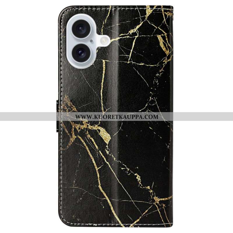 Kotelot iPhone 16 Plus Musta Kultainen Marmori Suojakuori