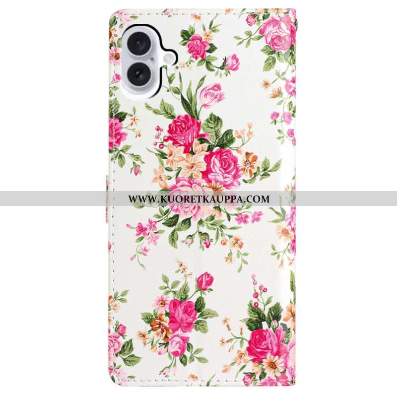 Kotelot iPhone 16 Plus Punaiset Kukat Hihnalla Suojakuori
