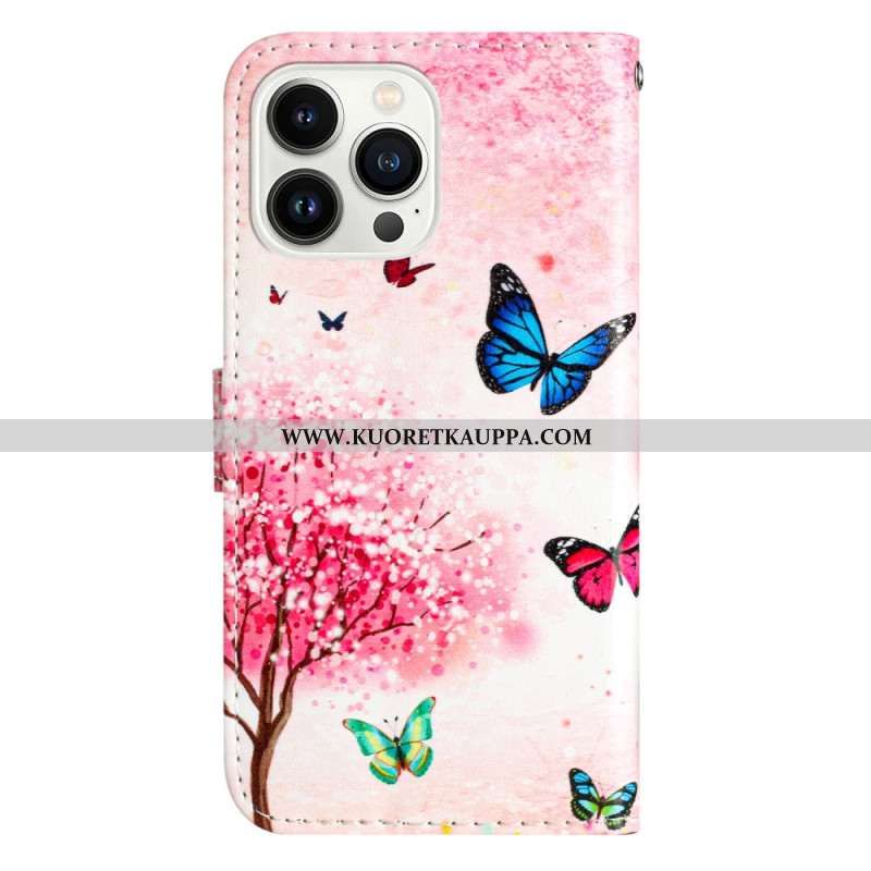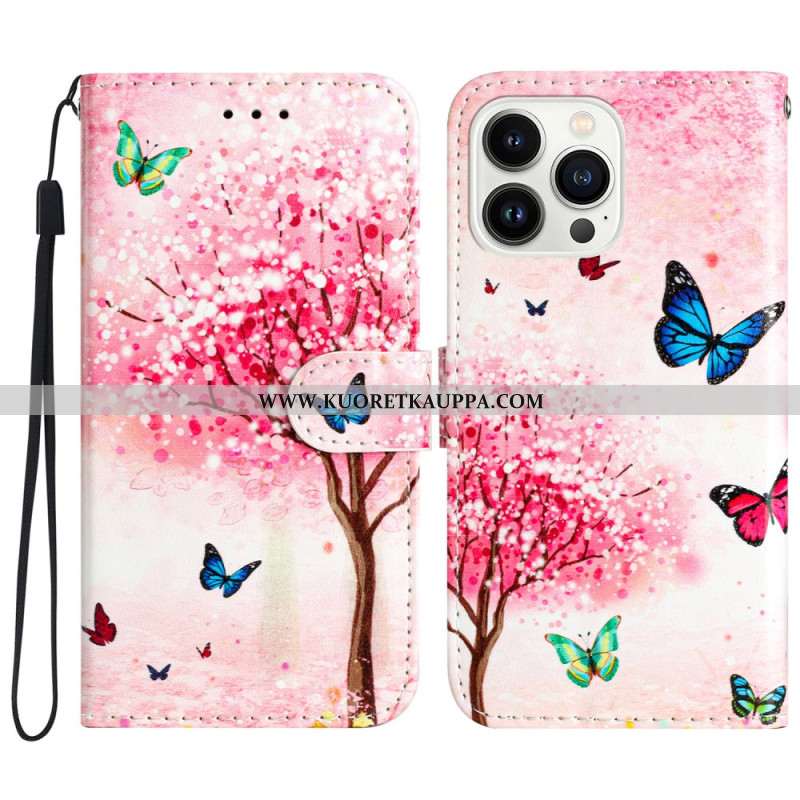 Kotelot iPhone 16 Pro Perhosprintti Hihnalla