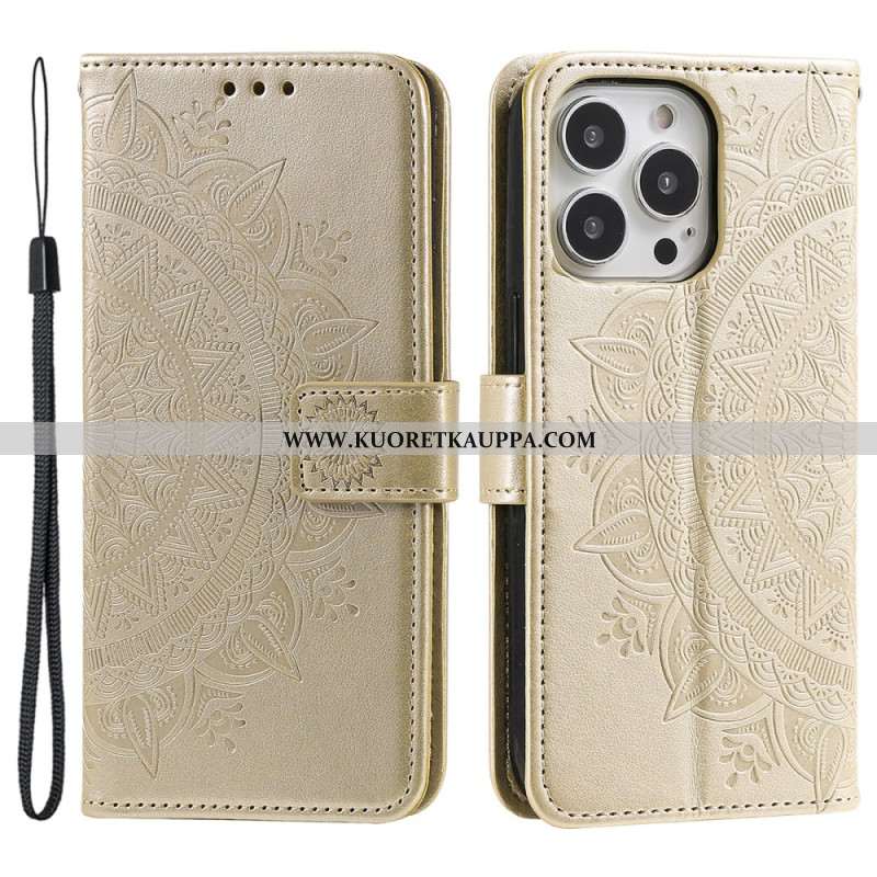 Kotelot iPhone 16 Pro Mandala-aurinko Hihnalla