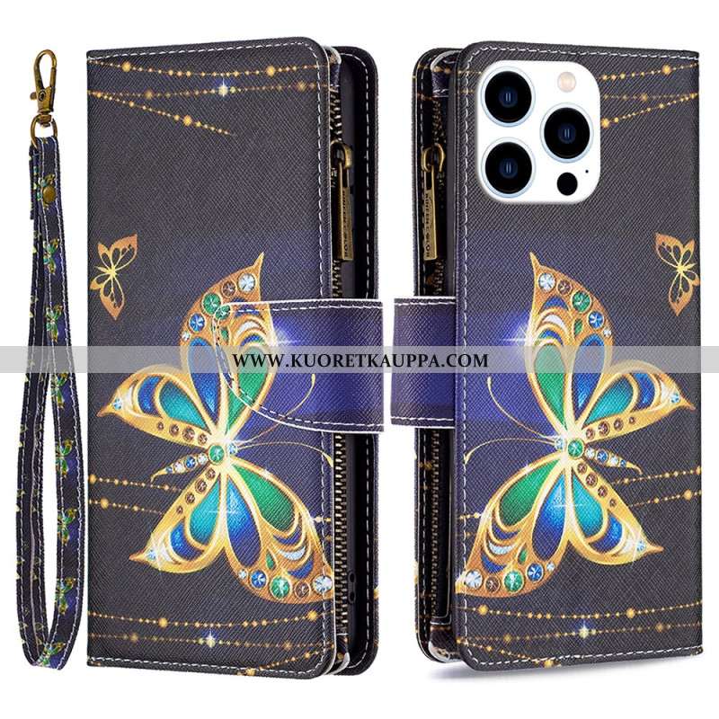 Kotelot iPhone 16 Pro Sininen Perhonen Hihnalla Suojakuori