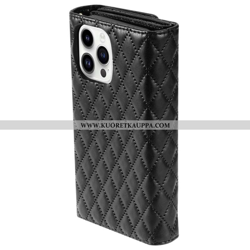 Kotelot iPhone 16 Pro Puhelinkuoret Tikattu Lompakko Hihnalla Ja Olkahihnalla