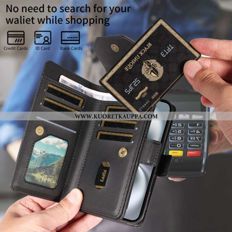 Kotelot iPhone 17 Lompakko Jossa 9 Korttipaikkaa Ja Rannehihna