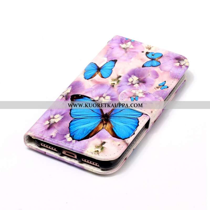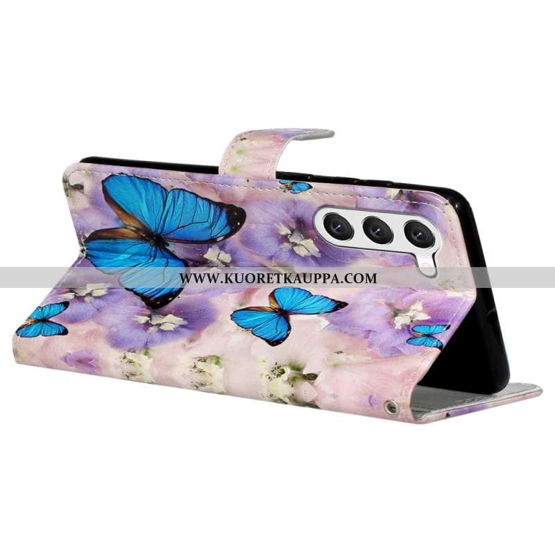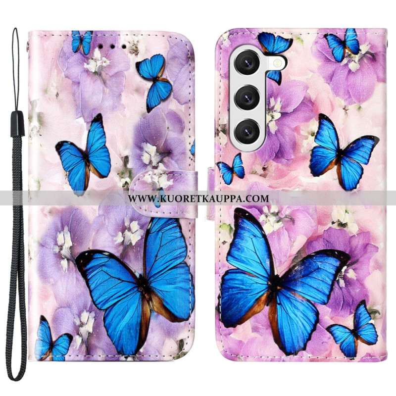 Nahkakotelo Samsung Galaxy S24 5g Two Butterflies -lompakko Hihnalla