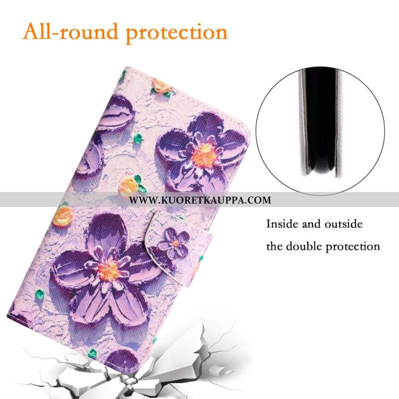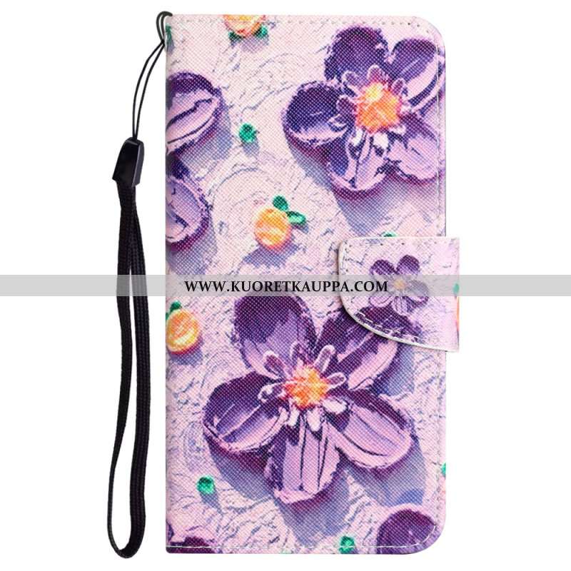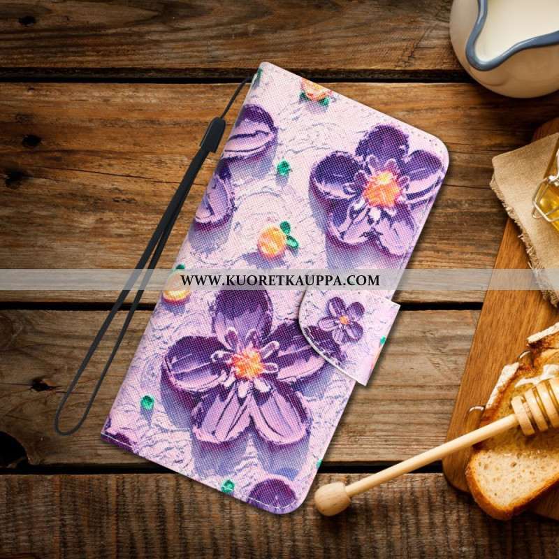 Kuoret Samsung Galaxy S24 Ultra 5g Purppuraisia Kukkia Hihnalla