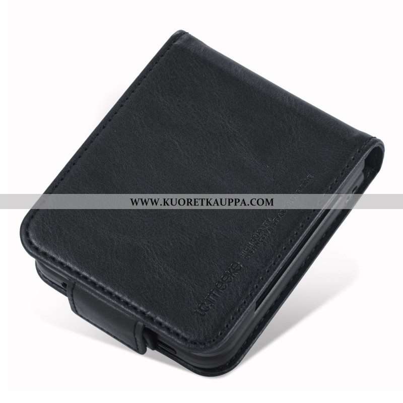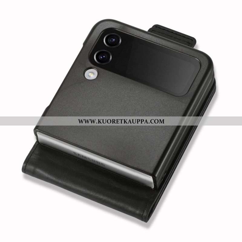 Case Samsung Galaxy Z Flip 4 Kotelot Flip Aito Litchi Värillinen Nahka