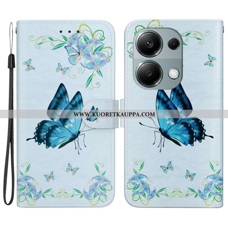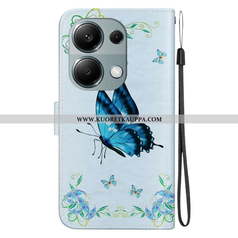 Kuoret Xiaomi Redmi Note 13 Pro 4g Sininen Perhonen Ja Kukkia Hihnalla