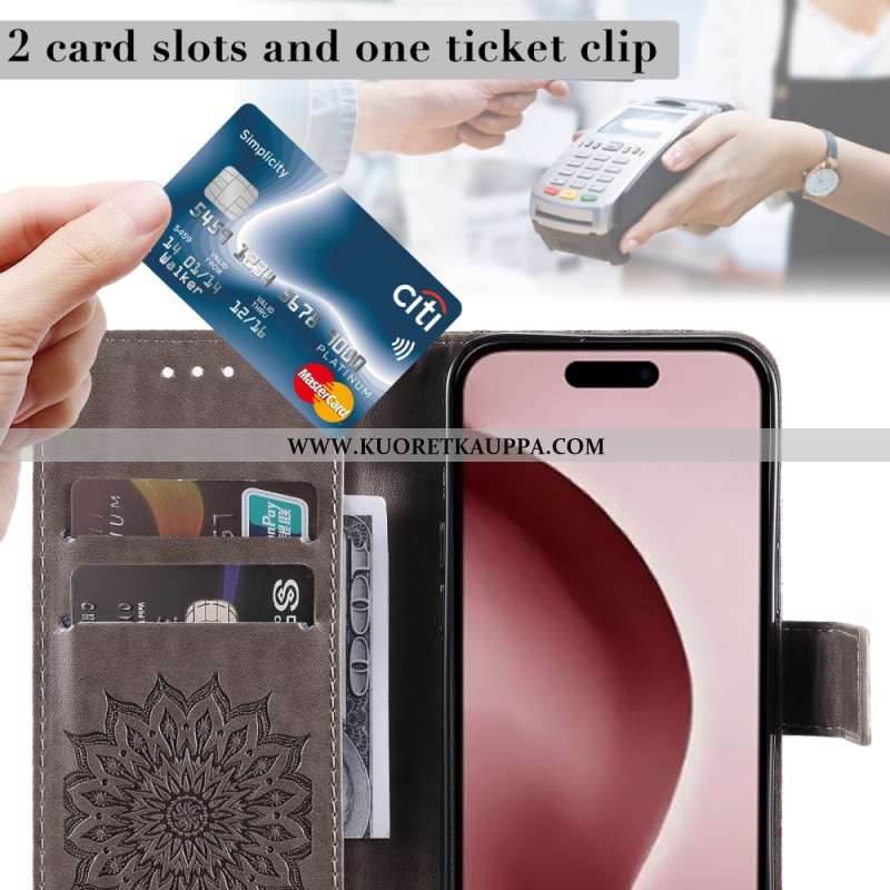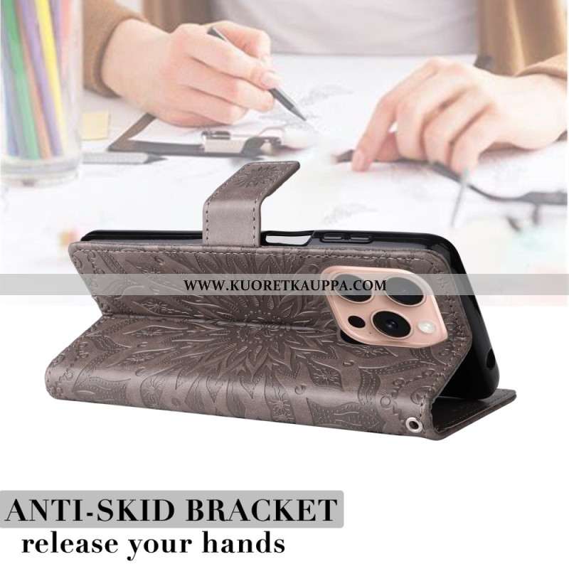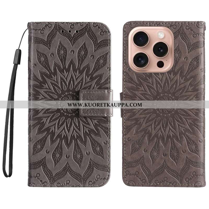 Kotelot iPhone 16 Pro Mandala-aurinko Hihnalla