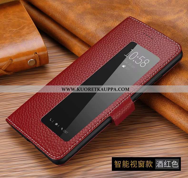 Kuori Huawei P30 Lite, Kuoret Huawei P30 Lite, Kotelo Huawei P30 Lite Aito Nahka Nahka Viini Punaine